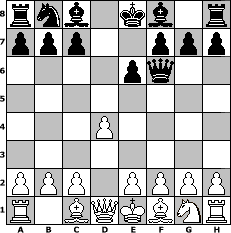 game notation in PGN-format [Event "Schachturnier Vier"] [Site "www.myChess.de"] [Date "2016.04.26"] [Round "1"] [White "kalle"] [Black "FrankB"] [ECO "C10"] [WhitemyELO "1692"] [BlackmyELO "1623"] [Result "0-1"] [TimeControl "10/1728000"] [WhiteDays "00"] [BlackDays "17"] [MyChessNo "103450"] 1. e4 e6 2. d4 d5 3. Nc3 dxe4 4. Nxe4 Nf6 5. Nxf6+ Qxf6 0-1 position notation in FEN-format rnb1kb1r/ppp2ppp/4pq2/8/3P4/8/PPP1PPPP/R1BQKBNR - KQkq - 0 6 Captured white pieces: Captured black pieces: Click on a captured piece in order to display the desired move!