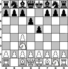 game notation in PGN-format [Event "YOUR LAST BREATH"] [Site "www.myChess.de"] [Date "2019.11.17"] [Round "2"] [White "muetoe"] [Black "Gauss1233"] [ECO "A21"] [WhitemyELO "1893"] [BlackmyELO "1428"] [Result "0-1"] [TimeControl "10/3456000"] [WhiteDays "38"] [BlackDays "39"] [MyChessNo "116361"] 1. c4 e5 2. Nc3 d6 0-1 position notation in FEN-format rnbqkbnr/ppp2ppp/3p4/4p3/2P5/2N5/PPPPPPPP/R1BQKBNR - KQkq - 0 3 Captured white pieces: Captured black pieces: Click on a captured piece in order to display the desired move!