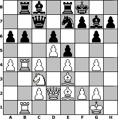 game notation in PGN-format [Event "Auf ein Neues 2"] [Site "www.myChess.de"] [Date "2021.03.20"] [Round "1"] [White "nyffhans"] [Black "alibengali"] [ECO "A15"] [WhitemyELO "2086"] [BlackmyELO "1638"] [Result "1-0"] [TimeControl "10/2592000"] [WhiteDays "78"] [BlackDays "68"] [MyChessNo "121557"] 1. c4 Nf6 2. d4 g6 3. Nc3 Bg7 4. e4 O-O 5. h3 b6 6. Nf3 Bb7 7. Bd3 d6 8. Be3 Nbd7 9. O-O c5 10. d5 e6 11. Qd2 Re8 12. Rad1 e5 13. Nb5 Qb8 14. Nh2 a6 15. Nc3 Qc7 16. a3 Rac8 17. Rb1 Rb8 18. Be2 Rec8 19. Ng4 Re8 20. Nh6+ Kf8 21. b3 Ng8 22. Ng4 Ndf6 23. b4 Nxg4 24. hxg4 Ne7 25. a4 cxb4 26. Rxb4 Bc8 27. Rfb1 1-0 position notation in FEN-format 1rb1rk2/2q1npbp/pp1p2p1/3Pp3/PRP1P1P1/2N1B3/2PQBPP1/1R4K1 - - - 2 27 Captured white pieces: Captured black pieces: Click on a captured piece in order to display the desired move!
