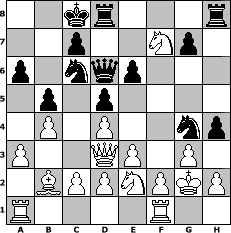 game notation in PGN-format [Event "Lied der Nibelungen"] [Site "www.myChess.de"] [Date "2021.06.18"] [Round "1"] [White "Seneca"] [Black "MiFie"] [ECO "D00"] [WhitemyELO "1472"] [BlackmyELO "1034"] [Result "1-0"] [TimeControl "10/2592000"] [WhiteDays "48"] [BlackDays "50"] [MyChessNo "122452"] 1. d4 d5 2. e3 Nc6 3. Nf3 Nf6 4. a3 Bf5 5. Bb5 Qd7 6. Ne5 Qd6 7. Nf3 O-O-O 8. Nc3 a6 9. Bd3 Bxd3 10. Qxd3 h6 11. O-O Ng4 12. g3 e6 13. b4 b5 14. Bb2 Be7 15. Ne2 Bg5 16. Kg2 h5 17. Nxg5 h4 18. Nxf7 1-0 position notation in FEN-format 2kr3r/2p2Np1/p1nqp3/1p1p4/1P1P2np/P2QP1P1/1BPPNPKP/R4R2 - - - 0 18 Captured white pieces: Captured black pieces: Click on a captured piece in order to display the desired move!