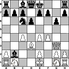 game notation in PGN-format [Event "2er Mannschaftsturnier"] [Site "www.myChess.de"] [Date "2006.11.10"] [Round "1"] [Board "2"] [White "Thomas1991"] [Black "MikeChess"] [ECO "B07"] [WhitemyELO "1461"] [BlackmyELO "1599"] [Result "0-1"] [TimeControl "10/1728000"] [WhiteDays "00"] [BlackDays "20"] [MyChessNo "29882"] 1. e4 d6 2. d4 Nf6 3. Bd3 Nc6 4. Be3 g6 5. f4 Bg7 6. c4 Ng4 7. Qd2 Nxe3 8. Qxe3 Bxd4 9. Qg3 Bxb2 0-1 position notation in FEN-format r1bqk2r/ppp1pp1p/2np2p1/8/2P1PP2/3B2Q1/Pb2P1PP/RN2K1NR - KQkq - 0 10 Captured white pieces: Captured black pieces: Click on a captured piece in order to display the desired move!