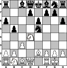 game notation in PGN-format [Event "unter uns Nr. 16"] [Site "www.myChess.de"] [Date "2014.01.28"] [Round "1"] [White "Mattheus"] [Black "Winston"] [ECO "B22"] [WhitemyELO "1298"] [BlackmyELO "1467"] [Result "0-1"] [TimeControl "10/864000"] [WhiteDays "00"] [BlackDays "10"] [MyChessNo "92575"] 1. e4 c5 2. c3 a6 3. Nf3 Nc6 4. d4 e6 5. e5 cxd4 6. Nxd4 Nxe5 7. Be2 h6 8. O-O b5 0-1 position notation in FEN-format r1bqkbnr/3p1pp1/p3p2p/1p2n3/3N4/2P5/PP2BPPP/RNBQ1RK1 - kq - 0 9 Captured white pieces: ![]() ![]() ![]() ![]() ![]() ![]() ![]() ![]() ![]() ![]() ![]() ![]() ![]() ![]() ![]() Captured black pieces: ![]() ![]() ![]() ![]() ![]() ![]() ![]() ![]() ![]() ![]() ![]() ![]() ![]() ![]() ![]() Click on a captured piece in order to display the desired move!