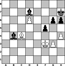 game notation in PGN-format [Event "mal so"] [Site "www.myChess.de"] [Date "2013.12.02"] [Round "1"] [White "Winston"] [Black "Naunhofer"] [ECO "B20"] [WhitemyELO "1515"] [BlackmyELO "1638"] [Result "0-1"] [TimeControl "10/1728000"] [WhiteDays "20"] [BlackDays "20"] [MyChessNo "91452"] 1. e4 c5 2. e5 Nc6 3. f4 d6 4. exd6 exd6 5. d3 Be6 6. Bd2 b5 7. Be2 Be7 8. Bf3 Rc8 9. Nc3 a6 10. Nge2 Nf6 11. Ng3 Rc7 12. f5 Bc8 13. O-O Nd4 14. Nce4 Nxf5 15. Nxf5 Bxf5 16. Ba5 O-O 17. Bxc7 Qxc7 18. Nxf6+ Bxf6 19. c3 d5 20. d4 Rd8 21. Kh1 c4 22. Qe1 Qd7 23. Qd2 Bg6 24. b3 h6 25. bxc4 dxc4 26. a3 Qd6 27. Rfd1 Re8 28. Qf2 Bg5 29. g3 Bd3 30. Re1 Rxe1+ 31. Rxe1 Qxa3 32. Re8+ Kh7 33. Qe1 Qc1 34. Qxc1 Bxc1 35. d5 Ba3 36. Ra8 b4 37. cxb4 c3 38. d6 c2 39. Rc8 c1=Q+ 40. Rxc1 Bxc1 41. h4 Bb5 42. Kg2 g6 43. Bb7 Bd7 44. Kf3 Ba3 45. Bxa6 Bxb4 46. Bc4 f5 0-1 position notation in FEN-format 8/3b3k/3P2pp/5p2/1bB4P/5KP1/8/8 - - - 0 47 Captured white pieces: ![]() ![]() ![]() ![]() ![]() ![]() ![]() ![]() ![]() ![]() ![]() ![]() ![]() ![]() ![]() Captured black pieces: ![]() ![]() ![]() ![]() ![]() ![]() ![]() ![]() ![]() ![]() ![]() ![]() ![]() ![]() ![]() Click on a captured piece in order to display the desired move!