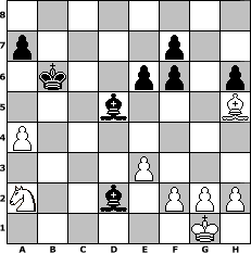 game notation in PGN-format [Event "PAL BENKO MEMORIAL TOURNAMENT"] [Site "www.myChess.de"] [Date "2019.09.05"] [Round "1"] [White "deepsabel"] [Black "lotchi"] [ECO "D31"] [WhitemyELO "1938"] [BlackmyELO "1288"] [Result "0-1"] [TimeControl "10/3456000"] [WhiteDays "40"] [BlackDays "40"] [MyChessNo "115750"] 1. d4 d5 2. c4 e6 3. Nc3 c6 4. Nf3 Nf6 5. Bg5 dxc4 6. a4 Be7 7. e3 Qb6 8. Qc2 h6 9. Bh4 Qb4 10. Be2 c5 11. O-O cxd4 12. Nxd4 Nc6 13. Nxc6 bxc6 14. Na2 Qb3 15. Rfc1 Qxc2 16. Rxc2 Bb7 17. Bxc4 O-O-O 18. b4 Rd7 19. Rac1 Rhd8 20. b5 Ba3 21. Rf1 Rd2 22. Rxd2 Rxd2 23. bxc6 Bxc6 24. Ba6+ Kc7 25. Nc3 Bb4 26. Nb1 Rd5 27. Rc1 Kb6 28. Be2 Rc5 29. Rxc5 Bxc5 30. Nc3 Bb4 31. Bxf6 gxf6 32. Na2 Bd2 33. Bh5 Bd5 0-1 position notation in FEN-format 8/p4p2/1k2pp1p/3b3B/P7/4P3/N2b1PPP/6K1 - - - 4 34 Captured white pieces: Captured black pieces: Click on a captured piece in order to display the desired move!