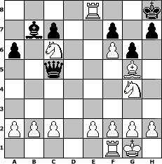 | game notation in PGN-format [Event "5 Jahre Wikinger"] [Site "www.myChess.de"] [Date "2009.12.13"] [Round "1"] [White "muetoe"] [Black "gunni50"] [ECO "C65"] [WhitemyELO "1859"] [BlackmyELO "1294"] [Result "1-0"] [TimeControl "10/864000"] [WhiteDays "10"] [BlackDays "10"] [MyChessNo "61526"] 1. e4 e5 2. Nf3 Nc6 3. Bb5 Nf6 4. O-O Bd6 5. d4 a6 6. Bxc6 bxc6 7. dxe5 Bxe5 8. Nxe5 O-O 9. Nc3 Bb7 10. Bg5 c5 11. Ng4 Re8 12. e5 Re6 13. exf6 Qf8 14. Qxd7 Rc8 15. Nd5 Rd6 16. Ne7+ Kh8 17. Qf5 Re8 18. Rae1 g6 19. Qxc5 Rc6 20. Nxc6 Qxc5 21. Rxe8+ 1-0 position notation in FEN-format 4R2k/1bp2p1p/p1N2Pp1/2q3B1/6N1/8/PPP1PPPP/5RK1 - - - 0 21 Captured white pieces:                              Captured black pieces:                               Click on a captured piece in order to display the desired move!