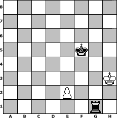 game notation in PGN-format [Event "Novemberturnier"] [Site "www.myChess.de"] [Date "2004.11.04"] [Round "1"] [White "Andylein1989"] [Black "Andreas"] [ECO "C42"] [WhitemyELO "1505"] [BlackmyELO "1679"] [Result "0-1"] [TimeControl "10/2592000"] [WhiteDays "179"] [BlackDays "180"] [MyChessNo "7801"] 1. e4 e5 2. Nf3 Nf6 3. Nc3 Bb4 4. Bc4 O-O 5. Nd5 Nxd5 6. Bxd5 c6 7. Bc4 d5 8. exd5 cxd5 9. a3 Bg4 10. h3 Bh5 11. axb4 dxc4 12. d3 cxd3 13. Qxd3 Nc6 14. Bd2 Bxf3 15. Qxf3 Nd4 16. Qd3 Rc8 17. c3 Nb3 18. Qxd8 Rfxd8 19. Rd1 Nxd2 20. Rxd2 Kf8 21. Rxd8+ Rxd8 22. O-O Rd2 23. Ra1 a6 24. Re1 f6 25. Rb1 Ke7 26. c4 Rc2 27. c5 Kd7 28. b3 Rc3 29. Rd1+ Kc7 30. Rb1 Kc6 31. g3 Kb5 32. Rd1 Rxb3 33. Rd7 Rxb4 34. Rxb7+ Kxc5 35. Rxg7 Kb6 36. Rxh7 a5 37. Rh6 a4 38. Rxf6+ Kb5 39. Rf5 a3 40. Rxe5+ Kb6 41. h4 a2 42. Re1 Rb1 43. Rxb1+ axb1=Q+ 44. Kg2 Kc6 45. h5 Kd6 46. g4 Ke6 47. f4 Qd3 48. f5+ Kf6 49. h6 Qe3 50. h7 Kg7 51. Kh2 Kxh7 52. f6 Kg6 53. g5 Qxg5 54. Kh3 Kxf6 55. Kh2 Kf5 56. Kh3 Qg1 0-1 position notation in FEN-format 8/8/8/5k2/8/7K/4P3/6r1 - - - 4 57 Captured white pieces: Captured black pieces: Click on a captured piece in order to display the desired move!