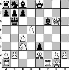 game notation in PGN-format [Event "Albspiele 11"] [Site "www.myChess.de"] [Date "2011.02.24"] [Round "1"] [White "Caligula"] [Black "Haki"] [ECO "C36"] [WhitemyELO "1359"] [BlackmyELO "1189"] [Result "1-0"] [TimeControl "10/1728000"] [WhiteDays "20"] [BlackDays "20"] [MyChessNo "72268"] 1. e4 e5 2. f4 exf4 3. Nf3 d5 4. exd5 Qxd5 5. c4 Qe6+ 6. Be2 Nf6 7. d4 Ng4 8. O-O Ne3 9. Bxe3 fxe3 10. d5 Qd7 11. Nc3 Be7 12. Ne5 Qd6 13. Nxf7 Qb6 14. Nxh8 Bf6 15. Qc2 g6 16. Nxg6 hxg6 17. Qxg6+ 1-0 position notation in FEN-format rnb1k3/ppp5/1q3bQ1/3P4/2P5/2N1p3/PP2B1PP/R4RK1 - q - 0 17 Captured white pieces: Captured black pieces: Click on a captured piece in order to display the desired move!