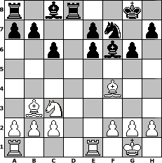 game notation in PGN-format [Event "Schach bei einem Schoppen Wein"] [Site "www.myChess.de"] [Date "2012.02.06"] [Round "1"] [White "woern63"] [Black "Grubengeist"] [ECO "B08"] [WhitemyELO "1897"] [BlackmyELO "1853"] [Result "1/2-1/2"] [TimeControl "10/1728000"] [WhiteDays "19"] [BlackDays "19"] [MyChessNo "79754"] 1. e4 d6 2. d4 Nf6 3. Nc3 g6 4. Nf3 Bg7 5. Be2 O-O 6. O-O c6 7. Re1 Nbd7 8. e5 dxe5 9. Nxe5 Nxe5 10. dxe5 Nd7 11. e6 fxe6 12. Bc4 Ne5 13. Qxd8 Rxd8 14. Bb3 Nf7 15. Bf4 Bf6 1/2-1/2 position notation in FEN-format r1br2k1/pp2pn1p/2p1pbp1/8/5B2/1BN5/PPP2PPP/R3R1K1 - - - 4 16 Captured white pieces: Captured black pieces: Click on a captured piece in order to display the desired move!