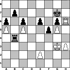 game notation in PGN-format [Event "Sommer 2010"] [Site "www.myChess.de"] [Date "2010.06.15"] [Round "1"] [White "Haki"] [Black "leitsgeheier"] [ECO "B01"] [WhitemyELO "1249"] [BlackmyELO "1639"] [Result "0-1"] [TimeControl "10/1728000"] [WhiteDays "100"] [BlackDays "073"] [MyChessNo "66343"] 1. e4 d5 2. exd5 Qxd5 3. Nc3 Qa5 4. d4 Bf5 5. Qf3 c6 6. Bd3 Bxd3 7. Qxd3 e6 8. Nf3 Nf6 9. O-O Bd6 10. Bd2 Nbd7 11. Rfe1 Qc7 12. a3 O-O 13. h3 Rad8 14. Ne4 Nxe4 15. Qxe4 Nf6 16. Qd3 Rfe8 17. Bg5 Be7 18. b4 h6 19. Bh4 a6 20. g4 Nd5 21. g5 hxg5 22. Bxg5 f6 23. Bh6 Bf8 24. Bd2 Nf4 25. Bxf4 Qxf4 26. Re4 Qc7 27. Re1 Kf7 28. Qc4 Qd6 29. Qd3 Qd5 30. c4 Qh5 31. Rh4 Qg6+ 32. Qxg6+ Kxg6 33. Kh1 Kf7 34. Re4 g6 35. c5 Bg7 36. a4 f5 37. Rh4 Kg8 38. Ng5 Bf6 39. f4 Rxd4 40. Rh6 Bxg5 41. fxg5 Kg7 42. Rb1 Red8 43. a5 Rd1+ 44. Rxd1 Rxd1+ 45. Kg2 Rd4 46. Kg3 Rxb4 0-1 position notation in FEN-format 8/1p4k1/p1p1p1pR/P1P2pP1/1r6/6KP/4P3/8 - - - 0 47 Captured white pieces: Captured black pieces: Click on a captured piece in order to display the desired move!