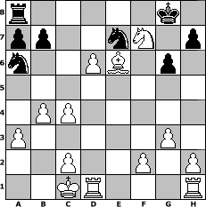 game notation in PGN-format [Event "Juli 2017"] [Site "www.myChess.de"] [Date "2017.07.12"] [Round "1"] [White "beowulf"] [Black "Haneken"] [ECO "A20"] [WhitemyELO "1415"] [BlackmyELO "1068"] [Result "1-0"] [TimeControl "10/2592000"] [WhiteDays "90"] [BlackDays "84"] [MyChessNo "108845"] 1. c4 e5 2. Nf3 Bd6 3. e4 Bb4 4. a3 Ba5 5. b4 d5 6. exd5 e4 7. Nd4 c5 8. Nb3 Bc7 9. Nxc5 Be5 10. Nc3 Qf6 11. N5xe4 Qe7 12. d4 f5 13. dxe5 fxe4 14. e6 Qh4 15. Qd4 Qg4 16. Qxe4 Nf6 17. Qxg4 Nxg4 18. Be2 Ne5 19. Bf4 Ng6 20. Bd6 Na6 21. O-O-O Nh4 22. g3 Rf8 23. Ne4 Nf5 24. Bxf8 Kxf8 25. Ng5 Kg8 26. Nf7 g6 27. Bg4 Ne7 28. d6 Bxe6 29. Bxe6 1-0 position notation in FEN-format r5k1/pp2nN1p/n2PB1p1/8/1PP5/P5P1/2P2P1P/2KR3R - - - 0 29 Captured white pieces: Captured black pieces: Click on a captured piece in order to display the desired move!