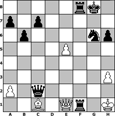game notation in PGN-format [Event "Ja, is denn heut scho Weihnachten?"] [Site "www.myChess.de"] [Date "2014.12.06"] [Round "1"] [White "Winston"] [Black "Ziegert"] [ECO "B02"] [WhitemyELO "1494"] [BlackmyELO "1226"] [Result "0-1"] [TimeControl "10/2592000"] [WhiteDays "112"] [BlackDays "030"] [MyChessNo "97037"] 1. e4 Nf6 2. e5 Nd5 3. c4 Nb6 4. d4 d6 5. Nf3 Bg4 6. b3 e6 7. Be2 Be7 8. h3 Bh5 9. Nc3 O-O 10. O-O N8d7 11. Ne4 d5 12. Neg5 h6 13. Nxf7 Rxf7 14. Nh2 Bxe2 15. Qxe2 Nf8 16. Ng4 Bg5 17. f4 Bh4 18. Bd2 dxc4 19. bxc4 Qxd4+ 20. Be3 Qxc4 21. Nxh6+ gxh6 22. Qg4+ Rg7 23. Qxh4 Qe4 24. Qf2 Nd5 25. Bc5 b6 26. Ba3 Ne3 27. g4 Nxf1 28. Rxf1 Ng6 29. Bc1 Rf8 30. Kh2 Rgf7 31. f5 exf5 32. gxf5 Rxf5 33. Qe1 Qc2+ 34. Kh1 Rxf1+ 0-1 position notation in FEN-format 5rk1/p1p5/1p4np/4P3/8/7P/P1q5/2B1Qr1K - - - 0 35 Captured white pieces: ![]() ![]() ![]() ![]() ![]() ![]() ![]() ![]() ![]() ![]() ![]() ![]() ![]() ![]() ![]() Captured black pieces: ![]() ![]() ![]() ![]() ![]() ![]() ![]() ![]() ![]() ![]() ![]() ![]() ![]() ![]() ![]() Click on a captured piece in order to display the desired move!