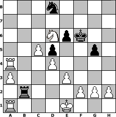 game notation in PGN-format [Event "Energiekrise"] [Site "www.myChess.de"] [Date "2022.10.29"] [Round "1"] [White "Mynona"] [Black "Haneken"] [ECO "D00"] [WhitemyELO "1463"] [BlackmyELO "1143"] [Result "1-0"] [TimeControl "10/1728000"] [WhiteDays "20"] [BlackDays "18"] [MyChessNo "127778"] 1. d4 d5 2. Bf4 e6 3. a3 Nc6 4. e3 Bd7 5. c4 Bd6 6. Bxd6 cxd6 7. b4 Nf6 8. c5 Qc7 9. Nc3 Ne7 10. Nb5 Qb8 11. Nxd6+ Kf8 12. Nf3 b6 13. Ne5 bxc5 14. bxc5 Qd8 15. Nexf7 Qa5+ 16. Qd2 Qxd2+ 17. Kxd2 Ne4+ 18. Nxe4 Kxf7 19. Nd6+ Kf6 20. Ba6 Rhb8 21. Bb7 Ba4 22. Bxa8 Rxa8 23. Rhb1 Nc6 24. Rb2 g6 25. Rb7 Nd8 26. Rxh7 Rb8 27. Rxa7 Rb2+ 28. Ke1 g5 29. Rxa4 1-0 position notation in FEN-format 3n4/8/3Npk2/2Pp2p1/R2P4/P3P3/1r3PPP/R3K3 - - - 0 29 Captured white pieces: Captured black pieces: Click on a captured piece in order to display the desired move!
