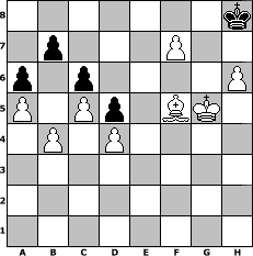 game notation in PGN-format [Event "Weihnachtsturnier 2012"] [Site "www.myChess.de"] [Date "2012.12.18"] [Round "1"] [White "Seneca"] [Black "borsti"] [ECO "D00"] [WhitemyELO "1466"] [BlackmyELO "1254"] [Result "1-0"] [TimeControl "10/864000"] [WhiteDays "09"] [BlackDays "10"] [MyChessNo "85557"] 1. d4 d5 2. e3 a6 3. Bd3 Nf6 4. Nd2 Bg4 5. f3 Bh5 6. Ne2 e6 7. Nf4 Bg6 8. Nxg6 hxg6 9. c3 Bd6 10. Qa4+ c6 11. g3 Nbd7 12. c4 O-O 13. O-O g5 14. c5 Bc7 15. a3 g6 16. Qc2 Kh7 17. b4 Rg8 18. Rf2 Nf8 19. e4 Qe7 20. Nb3 N8d7 21. Bxg5 Bd8 22. e5 Qe8 23. exf6 Bxf6 24. Bxf6 Nxf6 25. Re1 Kg7 26. Qe2 Kf8 27. Qe3 Rh8 28. Qf4 Qe7 29. Rfe2 Rh5 30. Re5 Rxe5 31. Qxe5 Rd8 32. a4 Ng8 33. a5 Qf6 34. Qxf6 Nxf6 35. Kg2 Ke7 36. h4 Rh8 37. Nd2 Rh5 38. Kh3 Nd7 39. f4 Nf6 40. Nf3 Ne8 41. Ng5 Nc7 42. f5 Rh6 43. fxg6 fxg6 44. g4 Ne8 45. Rxe6+ Kd7 46. h5 Ng7 47. Rxg6 Rxg6 48. Bxg6 Ke7 49. Nf3 Kf8 50. Kg3 Ne6 51. Bf5 Nd8 52. Kf4 Kg7 53. g5 Nf7 54. Ne5 Nd8 55. h6+ Kh8 56. g6 Kg8 57. Kg5 Kh8 58. Nf7+ Nxf7+ 59. gxf7 1-0 position notation in FEN-format 7k/1p3P2/p1p4P/P1Pp1BK1/1P1P4/8/8/8 - - - 0 59 Captured white pieces: Captured black pieces: Click on a captured piece in order to display the desired move!