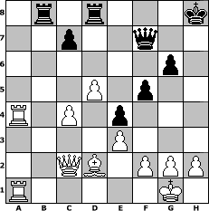 game notation in PGN-format [Event "Sommer 2010"] [Site "www.myChess.de"] [Date "2010.06.15"] [Round "1"] [White "leitsgeheier"] [Black "Knight"] [ECO "E34"] [WhitemyELO "1639"] [BlackmyELO "1159"] [Result "1-0"] [TimeControl "10/1728000"] [WhiteDays "57"] [BlackDays "60"] [MyChessNo "66317"] 1. d4 Nf6 2. c4 e6 3. Nc3 Bb4 4. Qc2 d5 5. cxd5 Nxd5 6. a3 Ba5 7. Nf3 Nc6 8. e3 O-O 9. Bd3 Nxc3 10. bxc3 b6 11. Bxh7+ Kh8 12. Be4 Bb7 13. Ne5 Nxe5 14. Bxb7 Rb8 15. Be4 Nc4 16. Bd3 b5 17. O-O g6 18. a4 e5 19. axb5 Qd5 20. Bxc4 Qxc4 21. Rxa5 Rxb5 22. Rxa7 f5 23. Bd2 e4 24. Rfa1 Rbb8 25. R7a4 Qf7 26. c4 Rfd8 27. d5 1-0 position notation in FEN-format 1r1r3k/2p2q2/6p1/3P1p2/R1P1p3/4P3/2QB1PPP/R5K1 - - - 0 27 Captured white pieces: Captured black pieces: Click on a captured piece in order to display the desired move!