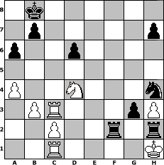 game notation in PGN-format [Event "CM-Turnier-1-2014"] [Site "www.myChess.de"] [Date "2014.01.11"] [Round "1"] [White "sprinterde"] [Black "Mayerhofer"] [ECO "A21"] [WhitemyELO "1660"] [BlackmyELO "1500"] [Result "0-1"] [TimeControl "10/2592000"] [WhiteDays "30"] [BlackDays "30"] [MyChessNo "92293"] 1. c4 e5 2. Nc3 Bb4 3. Qb3 Bxc3 4. Qxc3 Qe7 5. Qg3 f6 6. e3 d6 7. Bd3 f5 8. Ne2 Nc6 9. O-O Qf6 10. Nc3 Be6 11. Be2 f4 12. Qf3 O-O-O 13. d3 Rf8 14. exf4 exf4 15. Qe4 g5 16. Nd5 Qh6 17. h3 Bf5 18. Qf3 Ne5 19. Qh5 Qxh5 20. Bxh5 Bxd3 21. Rd1 Bxc4 22. Nc3 Nf6 23. Bf3 Nxf3+ 24. gxf3 Rhg8 25. Kh2 Nd7 26. b3 Be6 27. Bb2 Ne5 28. Rac1 Nxf3+ 29. Kg2 Nh4+ 30. Kh2 g4 31. Nb5 g3+ 32. fxg3 fxg3+ 33. Kg1 Rf3 34. Nxc7 Rf2 35. Nxe6+ Kb8 36. Rd3 Rxb2 37. a4 Rg2+ 38. Kh1 a6 39. Nd4 Rf8 40. Re3 Rff2 41. Rc3 Rh2+ 0-1 position notation in FEN-format 1k6/1p5p/p2p4/8/P2N3n/1PR3pP/2P2r1r/2R4K - - - 6 42 Captured white pieces: Captured black pieces: Click on a captured piece in order to display the desired move!