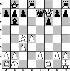 game notation in PGN-format [Event "K"] [Site "www.myChess.de"] [Date "2009.06.03"] [Round "2"] [White "sel"] [Black "Knight"] [ECO "C34"] [WhitemyELO "1351"] [BlackmyELO "1110"] [Result "1-0"] [TimeControl "10/2592000"] [WhiteDays "29"] [BlackDays "30"] [MyChessNo "56367"] 1. e4 e5 2. f4 exf4 3. Nf3 Bc5 4. d4 Bb6 5. Bxf4 Qe7 6. e5 d6 7. Bc4 dxe5 8. Bxe5 Bg4 9. Qd3 Nc6 10. O-O O-O-O 11. Kh1 Nxe5 12. Nxe5 Nh6 13. c3 Bh5 14. Qh3+ Kb8 15. Qxh5 f6 16. Nf7 Nxf7 17. Qxf7 1-0 position notation in FEN-format 1k1r3r/ppp1qQpp/1b3p2/8/2BP4/2P5/PP2P1PP/RN3R1K - - - 0 17 Captured white pieces: Captured black pieces: Click on a captured piece in order to display the desired move!