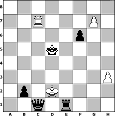 game notation in PGN-format [Event "Wrixum - Open die III."] [Site "www.myChess.de"] [Date "2006.10.24"] [Round "1"] [White "ujack1961"] [Black "bane"] [ECO "C54"] [WhitemyELO "1875"] [BlackmyELO "1733"] [Result "0-1"] [TimeControl "10/3456000"] [WhiteDays "280"] [BlackDays "271"] [MyChessNo "29484"] 1. e4 e5 2. Nf3 Nc6 3. Bc4 Bc5 4. c3 Nf6 5. O-O Nxe4 6. d4 d5 7. Be2 exd4 8. cxd4 Bb6 9. Nc3 O-O 10. Na4 Qd6 11. Nxb6 axb6 12. Be3 Bg4 13. h3 Bxf3 14. Bxf3 f5 15. Qd3 f4 16. Bc1 Ng5 17. Bd1 Nb4 18. Qb1 c5 19. a3 Nc6 20. dxc5 bxc5 21. b3 b6 22. Bg4 Ne5 23. Bd1 c4 24. bxc4 dxc4 25. Bc2 Qc6 26. Rd1 Ng6 27. Bxg6 hxg6 28. Qb4 Qa4 29. Qxa4 Rxa4 30. Rb1 Rf6 31. Rb4 Rxb4 32. axb4 Nf7 33. Rd4 b5 34. Bxf4 c3 35. Bc1 Ra6 36. Rd3 Rc6 37. Rd5 Nd6 38. Kf1 Kf7 39. Ke2 Ke6 40. Rg5 Rc7 41. Rxg6+ Kd5 42. Rxd6+ Kc4 43. Kd1 Kb3 44. Rd3 Ra7 45. f4 Kxb4 46. g4 Kc4 47. Re3 b4 48. Re4+ Kb3 49. Be3 Ra2 50. f5 Rh2 51. Re7 Kc4 52. g5 b3 53. Bc1 c2+ 54. Ke1 Rh1+ 55. Kd2 Rd1+ 56. Ke3 Rxc1 57. Rc7+ Kd5 58. f6 gxf6 59. g6 Re1+ 60. Kd2 b2 61. g7 c1=Q+ 0-1 position notation in FEN-format 8/2R3P1/5p2/3k4/8/7P/1p1K4/2q1r3 - - - 0 62 Captured white pieces: Captured black pieces: Click on a captured piece in order to display the desired move!