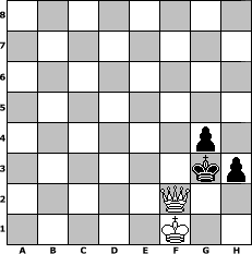 game notation in PGN-format [Event "Human Brain Turnier 2014"] [Site "www.myChess.de"] [Date "2014.06.12"] [Round "1"] [White "sprinterde"] [Black "Joschi"] [ECO "A16"] [WhitemyELO "1694"] [BlackmyELO "1531"] [Result "1-0"] [TimeControl "10/2592000"] [WhiteDays "187"] [BlackDays "209"] [MyChessNo "94788"] 1. c4 Nf6 2. Nc3 c5 3. e3 Nc6 4. Nf3 d5 5. Qa4 e6 6. Ne5 Bd7 7. Nxd7 Qxd7 8. cxd5 exd5 9. Bb5 Bd6 10. O-O O-O 11. d3 Rfc8 12. e4 dxe4 13. Nxe4 Nxe4 14. dxe4 a6 15. Bxc6 Qxc6 16. Qxc6 Rxc6 17. Rd1 Rac8 18. f4 c4 19. Bd2 b5 20. e5 Bc5+ 21. Kf1 b4 22. Rac1 Be7 23. Be3 g6 24. Rd2 Bc5 25. Bxc5 Rxc5 26. Rd4 a5 27. Rcd1 c3 28. b3 Kf8 29. Rc1 Ke7 30. Ke2 Rd8 31. Rxd8 Kxd8 32. Ke3 Kc7 33. Kd4 Kc6 34. Rc2 Rd5+ 35. Ke3 Kc5 36. a3 Rd4 37. axb4+ axb4 38. Ra2 Rd7 39. g4 Re7 40. Ke4 Rd7 41. Ke3 Kb5 42. h3 Kc5 43. Ra1 Kb6 44. f5 Rd2 45. e6 fxe6 46. f6 Rd7 47. Ke4 Rc7 48. Ke5 Kc5 49. Kxe6 Kd4 50. f7 Rxf7 51. Kxf7 Kd3 52. Ke6 Kd2 53. Kd5 c2 54. Kc4 c1=Q+ 55. Rxc1 Kxc1 56. Kxb4 Kd2 57. Kc4 Ke3 58. b4 Kf4 59. b5 Kg3 60. b6 Kxh3 61. b7 Kxg4 62. b8=Q h5 63. Qe8 g5 64. Qe4+ Kh3 65. Kd3 h4 66. Qf5+ g4 67. Ke2 Kg3 68. Kf1 h3 69. Qf2# 1-0 position notation in FEN-format 8/8/8/8/6p1/6kp/5Q2/5K2 - - - 1 69 Captured white pieces: Captured black pieces: Click on a captured piece in order to display the desired move!