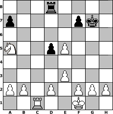 game notation in PGN-format [Event "Ohne techn. Hilfsmittel..."] [Site "www.myChess.de"] [Date "2013.02.13"] [Round "1"] [White "FrankB"] [Black "hape50"] [ECO "D02"] [WhitemyELO "1572"] [BlackmyELO "1323"] [Result "1-0"] [TimeControl "10/864000"] [WhiteDays "08"] [BlackDays "28"] [MyChessNo "86563"] 1. d4 d5 2. Nf3 h6 3. Bf4 e6 4. e3 Nf6 5. c4 c6 6. Nc3 Na6 7. cxd5 exd5 8. Bxa6 bxa6 9. O-O Be7 10. Rc1 O-O 11. Na4 Bd7 12. Ne5 Rc8 13. Nc5 a5 14. Ncxd7 Nxd7 15. Nxc6 Qe8 16. Nxa5 g5 17. Bg3 Nf6 18. Be5 Nh7 19. Qh5 Rxc1 20. Rxc1 Bf6 21. Bxf6 Nxf6 22. Qxh6 Qe4 23. Qxf6 Kh7 24. Qxg5 Rg8 25. Qh5+ Kg7 26. Qe5+ Qxe5 27. dxe5 Rd8 28. Kf1 1-0 position notation in FEN-format 3r4/p4pk1/8/N2pP3/8/4P3/PP1P1PPP/2R2K2 - - - 2 28 Captured white pieces: Captured black pieces: Click on a captured piece in order to display the desired move!