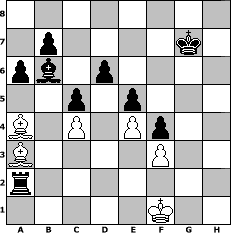 game notation in PGN-format [Event "Unter uns Nr. 8"] [Site "www.myChess.de"] [Date "2013.03.03"] [Round "1"] [White "Haneken"] [Black "ndziemba"] [ECO "C44"] [WhitemyELO "1350"] [BlackmyELO "1353"] [Result "0-1"] [TimeControl "10/864000"] [WhiteDays "49"] [BlackDays "37"] [MyChessNo "86939"] 1. e4 e5 2. Nf3 Nc6 3. Bd3 Nf6 4. O-O Bc5 5. Bc4 h6 6. Nc3 O-O 7. Nd5 d6 8. Bd3 Be6 9. Nxf6+ Qxf6 10. b3 Bg4 11. h3 Bxf3 12. Qxf3 Qxf3 13. gxf3 Nd4 14. Kg2 Rae8 15. c3 Nc6 16. b4 Bb6 17. b5 Ne7 18. h4 f5 19. Rb1 f4 20. Bc4+ Kh8 21. Rh1 c6 22. h5 g6 23. hxg6 Nxg6 24. Rxh6+ Kg7 25. Rh1 Rh8 26. Ba3 c5 27. Bd5 Rb8 28. Rh3 Rxh3 29. Kxh3 Rh8+ 30. Kg2 Nh4+ 31. Kf1 Nxf3 32. Rb3 Nxd2+ 33. Ke2 Nxb3 34. Bxb3 Ba5 35. c4 Rh3 36. f3 a6 37. b6 Bxb6 38. Ba4 Rh2+ 39. Kf1 Rxa2 0-1 position notation in FEN-format 8/1p4k1/pb1p4/2p1p3/B1P1Pp2/B4P2/r7/5K2 - - - 0 40 Captured white pieces: Captured black pieces: Click on a captured piece in order to display the desired move!